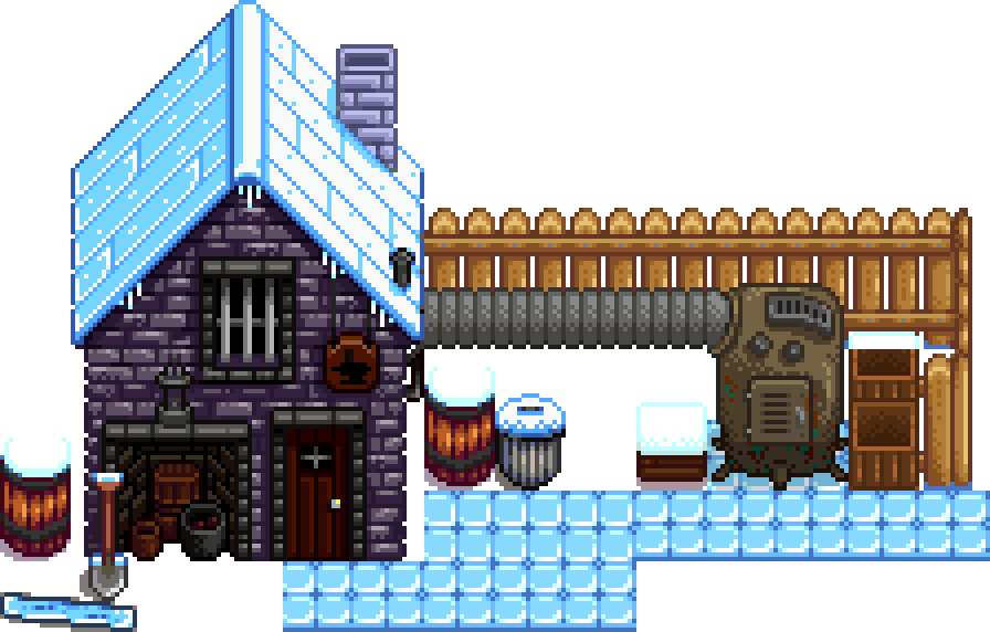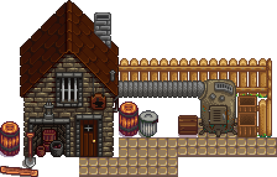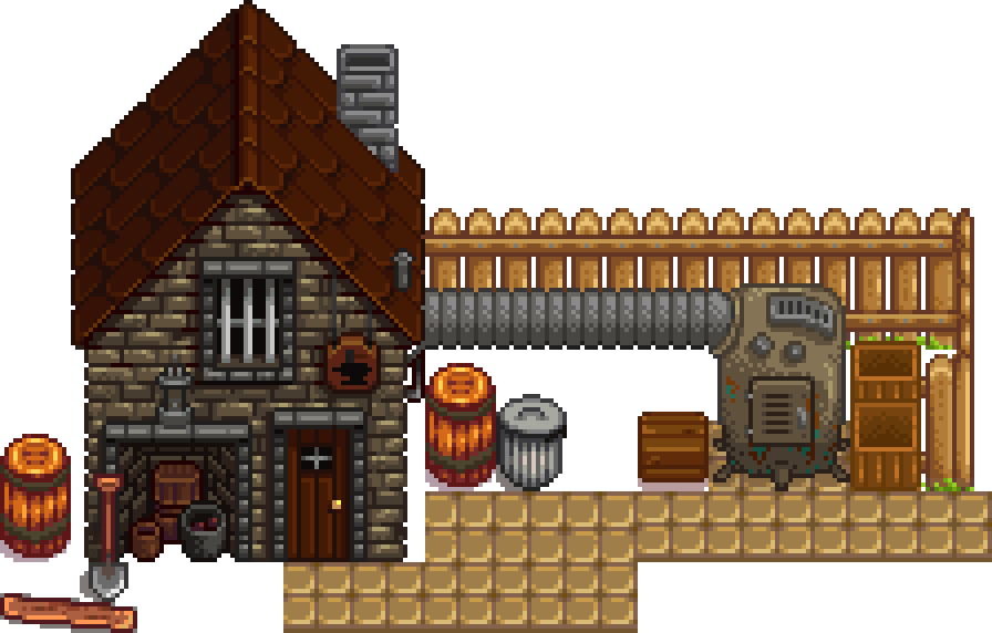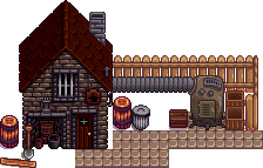 Кузница находится на юго-востоке города Пеликан. В ней живёт и работает её владелец кузнец Клинт. Он продает руду, улучшает инструменты, а также вскрывает жеоды.