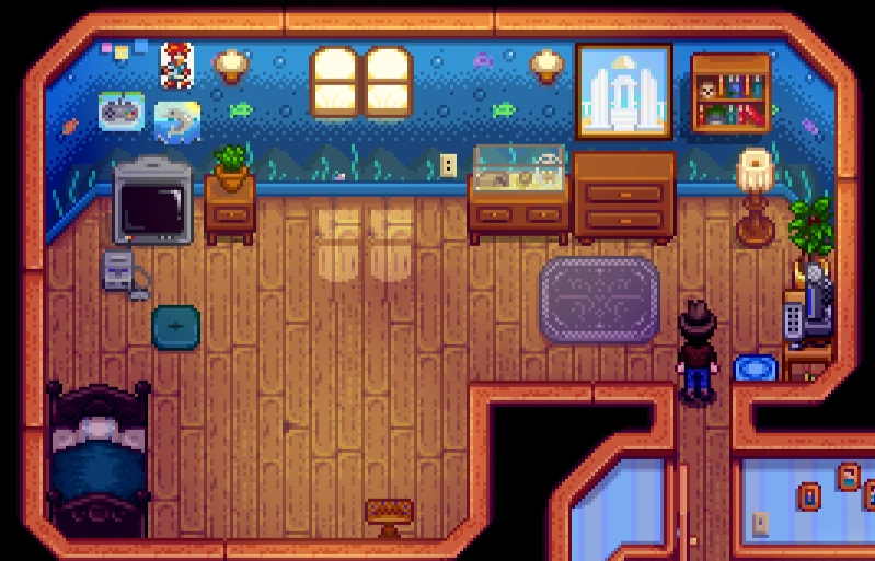 Note: The player needs two hearts with either Pierre or Caroline to enter their room.