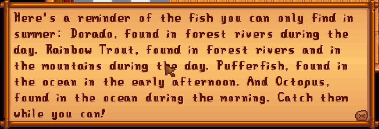 Pufferfish are also sometimes sold at the Traveling Cart in Cindersap Forest.